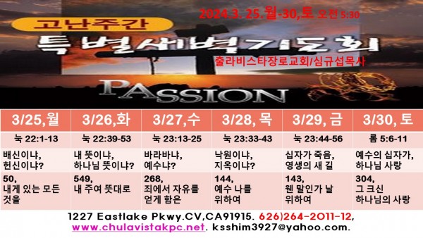 함께 새벽을 깨워 주님 앞에서 특별새벽기도로 모여 복된 예배를 드리고, 은혜를 나누고자 합니다.