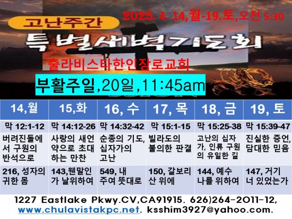 2025년 고난주간 특별새벽기도회와 부활주일 예배에 초대합니다