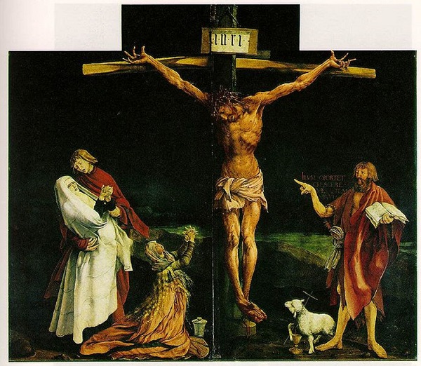 “마티아스 그뤼네발트”의 “십자가에 못박히신 예수”라는 그림입니다.